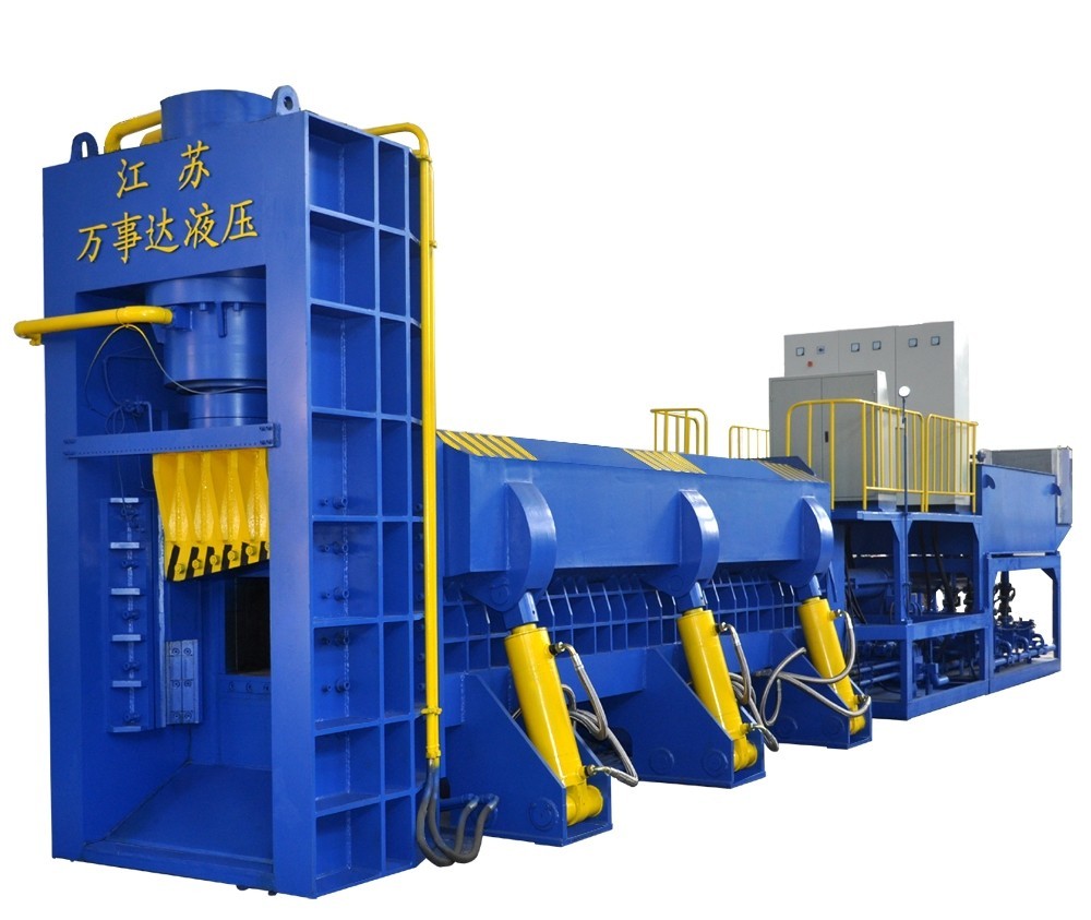 Manuseio Versátil de Materiais: A prensa é capaz de processar uma variedade de tipos de metal, incluindo aço, ferro, alumínio e cobre, fornecendo uma solução versátil para ferros-velhos.